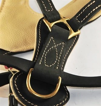 Naar keuze wordt het tuig gemaakt in bruin of zwart leer.