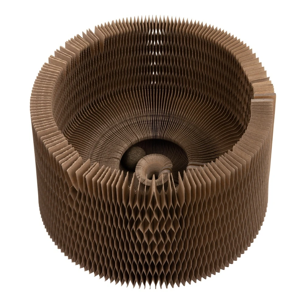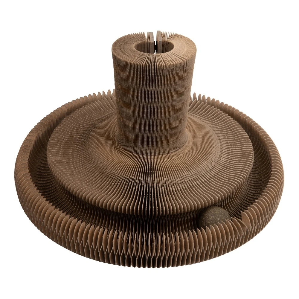 Het ontwerp van deze kartonnen kattenmand zorgt ervoor dat jouw kat zich op verschillende manieren kan vermaken en daarnaast past het ook naadloos in elk interieur.
