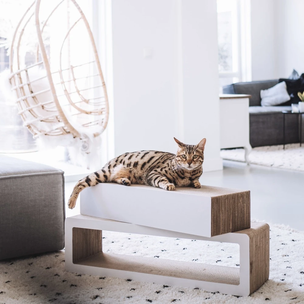 Vrijwel iedere kattenbezitter heeft te maken met een kat die aan de meubelen krabt. Geeft uw kat dan ook zo’n mooi design krabmeubel die ook nog eens veel beter in het interieur past dan een meer traditionele krabpaal.