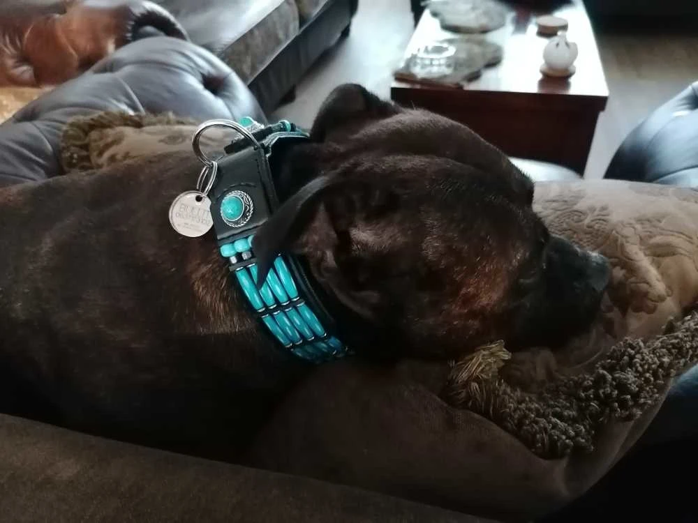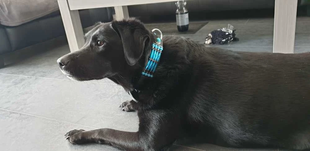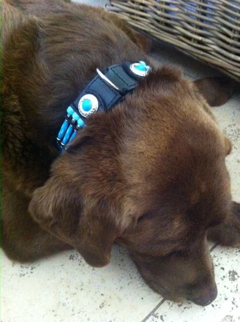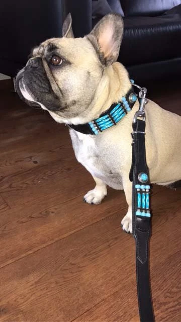 Bijzonder fraai met de bijpassendehondenriem.Â