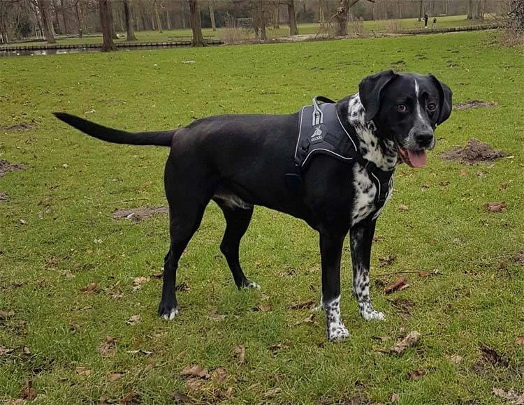 Voor extra zichtbaarheid is het hondentuig voorzien van reflecterende strepen. Tot slot heeft het tuig een handvat op de rug.