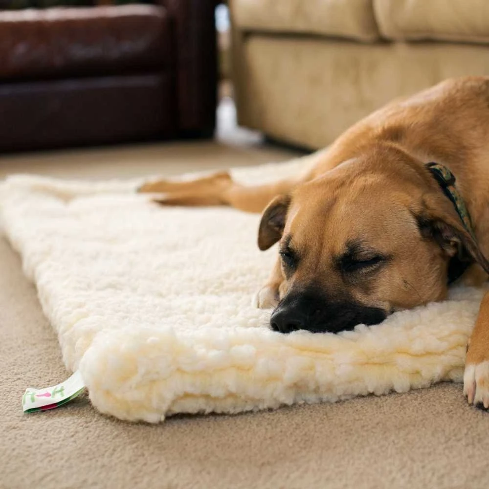 Dit is een unieke mat die is gemaakt van dik synthetisch lamswol. Dit materiaal heeft dezelfde eigenschappen als natuurlijk wol. Het resultaat is dat de hond er bijzonder comfortabel op kan liggen. De lichaamstemperatuur wordt gereguleerd en de gewrichten worden ondersteund.