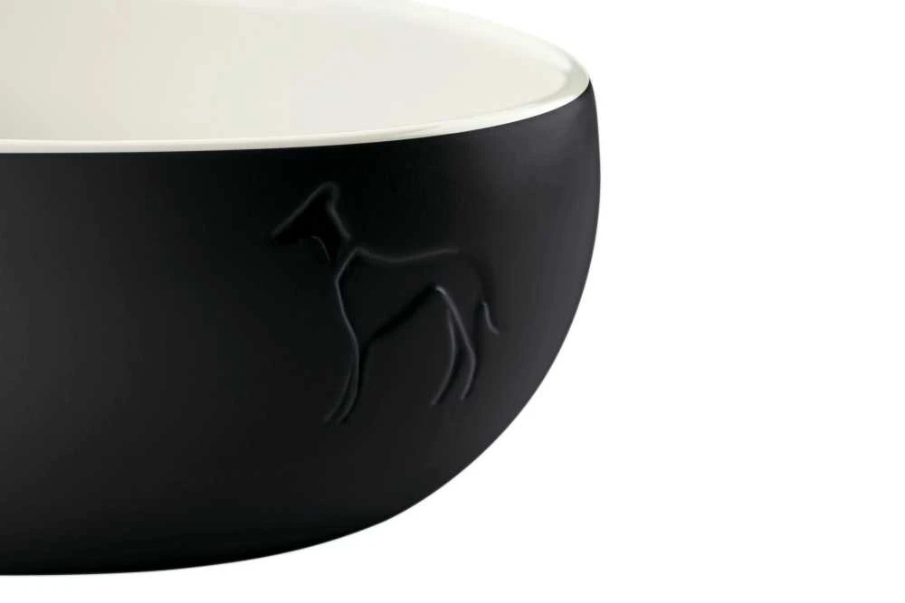 De keramische bak is een moderne toevoeging aan elk huis. De aangename natuurlijke kleuren en klassieke vorm met de elegante opdruk van het hondensilhouet zorgen ervoor dat uw huisdier zich meteen thuis voelt. Dankzij de siliconen rand rond de bodem van de bak en het relatief zware ontwerp beweegt de bak niet op de grond en is hij ook geschikt voor bijzonder gevoelige honden.