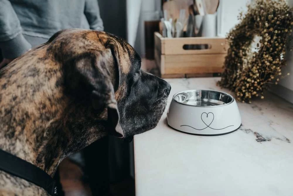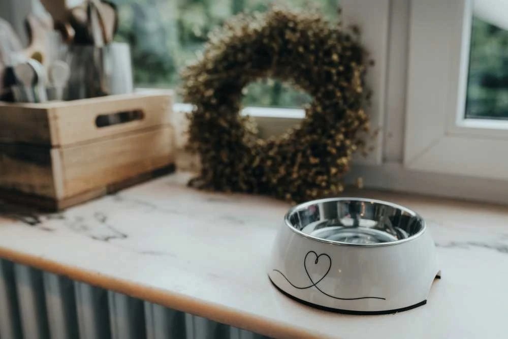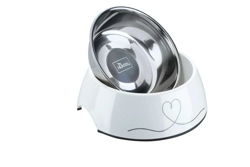 Een mooie witte voerbak of drinkbak, die is geschikt voor honden en katten. De bak heeft een hartje als decoratie.