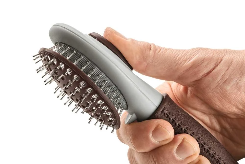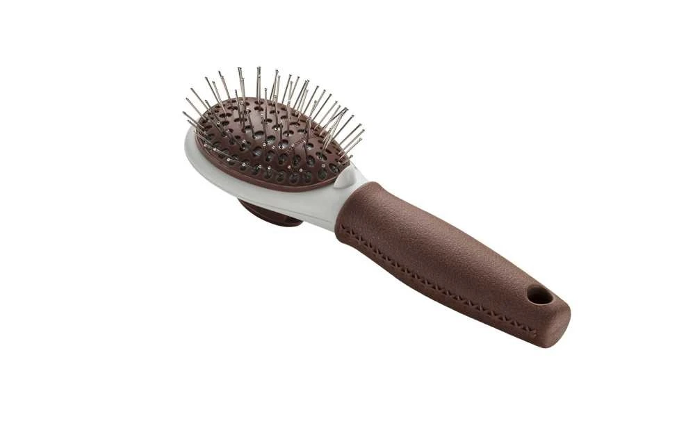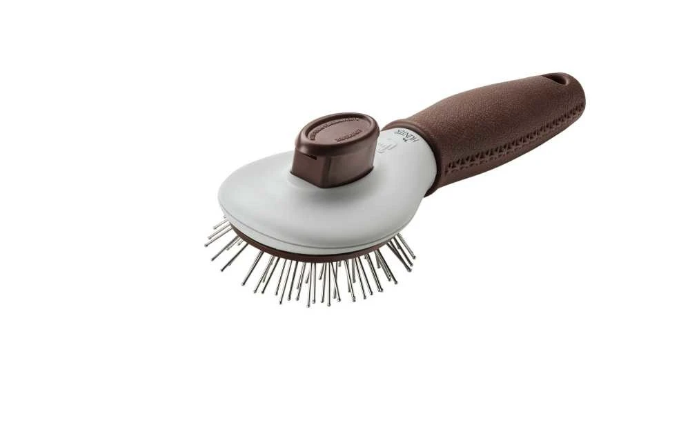 Deze uitstekende hondenborstel is verzorgt de top- en ondervacht van uw hond optimaal. Regelmatig borstelen zorgt voor een glanzende vacht. Ook zorgt dat voor een betere verdeling van natuurlijke oliën in de vacht – een enorm voordeel als het om hygiëne gaat. Langharige, middellange en kortharige honden zullen allemaal baat hebben bij het gebruik van deze borstel. De ergonomisch gevormde handgreep garandeert dat de kam anti slip en gemakkelijk in gebruik is. Deze borstel maakt het bijzonder handig om de hygiëne van uw huisdier te behouden: druk gewoon op de geïntegreerde knop om de verzamelde haren te verwijderen.