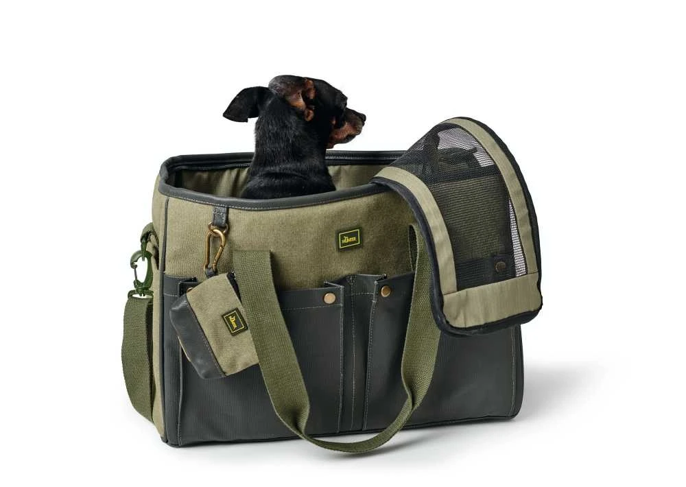 Deze robuuste draagtas is geschikt voor kleine honden en katten tot ca. 7 kg. De draagtas is gemaakt van eersteklas stijlvol antislip katoenen canvas. De hondendraagtas heeft praktische details zoals een apart draagtas voor hondenpoepzakjes en royale buitenvakken. Uw favoriete dier kunt u van bovenaf in de tas stoppen en op de knuffelige dekentje van imitatie lamsleer voelt hij zich meteen thuis. U kunt ervoor kiezen om de tas in de hand te dragen of nonchalant over je schouder te slingeren.