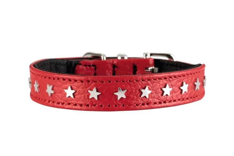 Deze hondenhalsband is gemaakt van nappa leer en is verkrijgbaar in verschillende maten voor zowel kleine als middelgrote honden. De zilverkleurige sterren maakt uw hond extra sprankelend. De langere halsbanden voor de grotere maten zijn breder. De framboos kleurige halsband combineert een moderne uitstraling met een ingetogen ontwerp en de gebruikelijke hoge kwaliteit die u van Hunter mag verwachten. Dit is niet verwonderlijk, omdat deze collectie exclusief in Duitsland wordt vervaardigd.