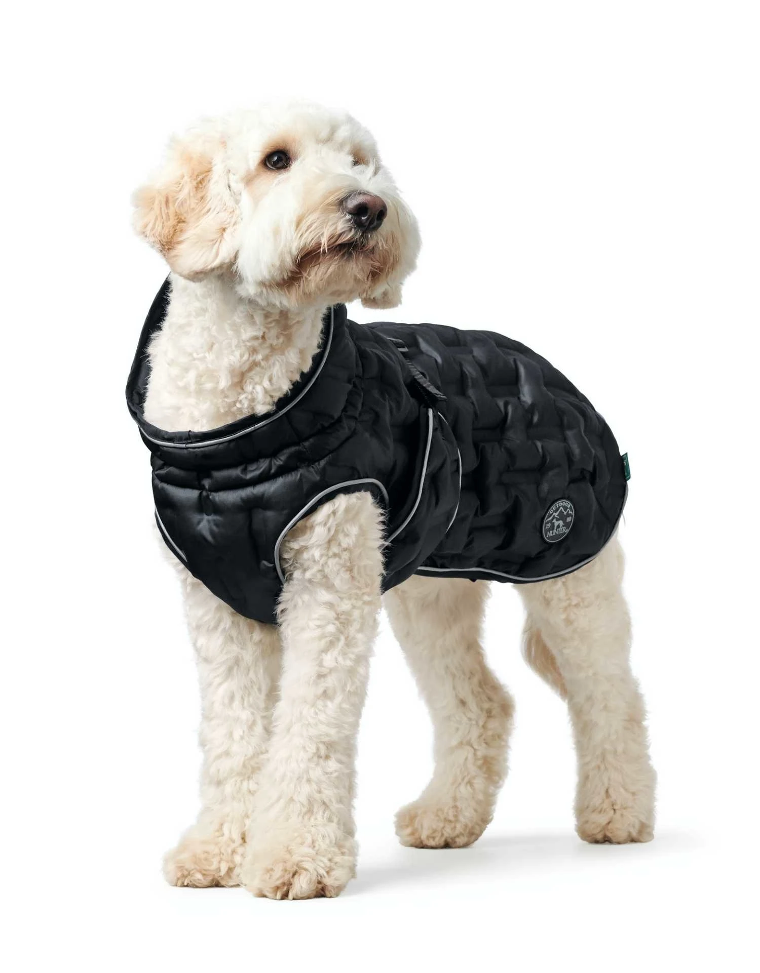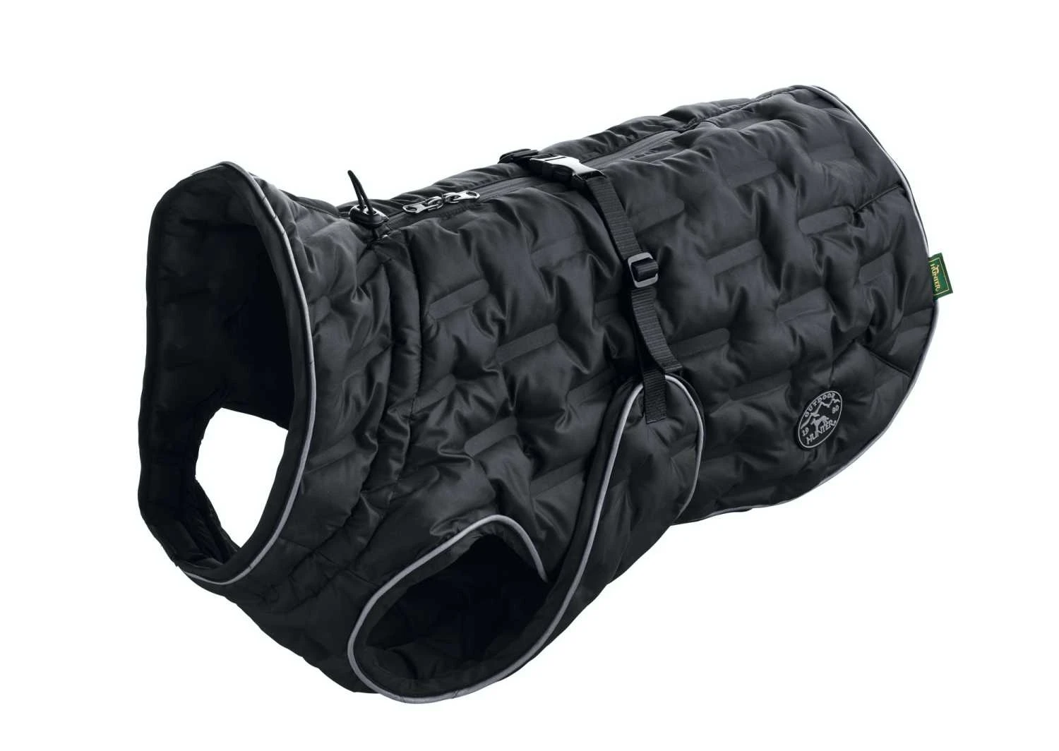 Deze mooie zwarte hondenjas is van topkwaliteit. De polyester hondenjas is waterafstotend. Bovendien is dit model water- en vuilafstotend door BIONIC FINISH® C6.
