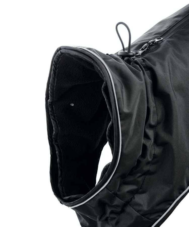 De verstelbare buikband met kliksluiting garandeert volledige flexibiliteit en reflecterende biezen zorgen voor maximale zichtbaarheid. De hondenjas kan op max. 30 graden worden gewassen.