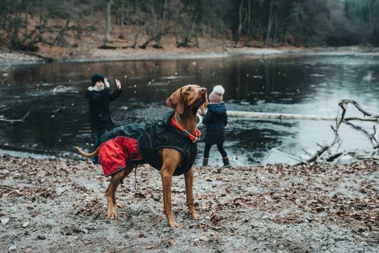 Deze comfortabele zwarte / rode hondenjas is ideaal voor regenachtige en koele dagen. De polyester hondenjas is waterafstotend, winddicht en lichtgewicht. Het jasje is gevoerd met zacht fleece dat de hond aangenaam warm houdt. De voering is uitneembaar. De elastische bevestigingsbanden voor de achterpoten (variabel in positie en lengte) zorgen voor een perfecte pasvorm, ongeacht de lichaamsbouw van uw hond. De nek van de hondenjas is in de breedte verstelbaar door middel van een elastische band en heeft een opening voor de D-ring van een halsband. Op de rug is er een ritssluiting zodat de hond ook een tuigje kan dragen.