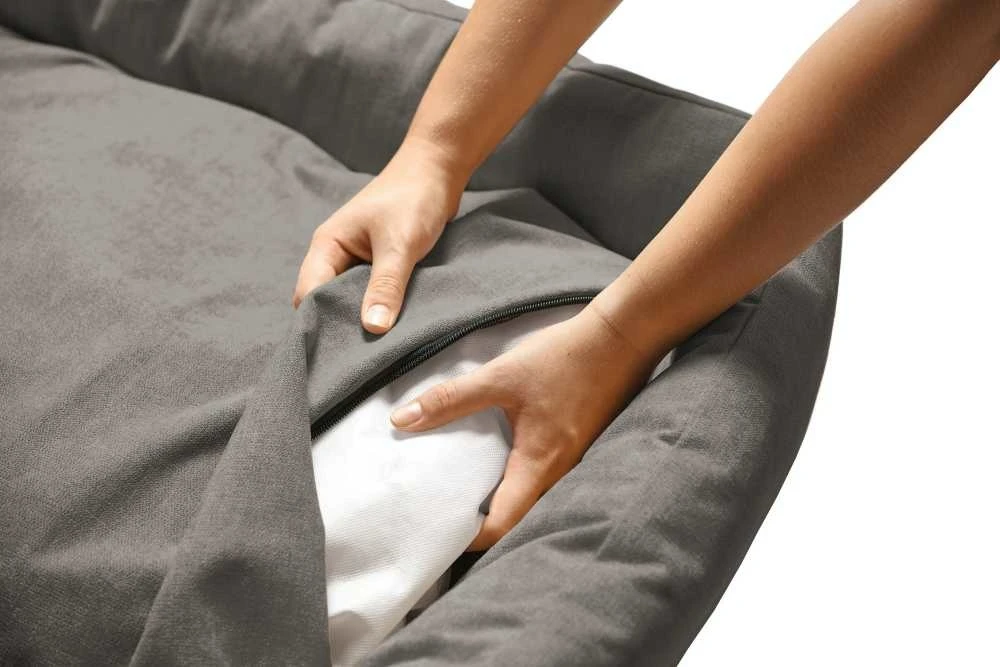 De ritssluitingen zorgen ervoor dat al het vulmateriaal verwijderd kan worden. De hoes is wasbaar in de machine op 30 ° C.