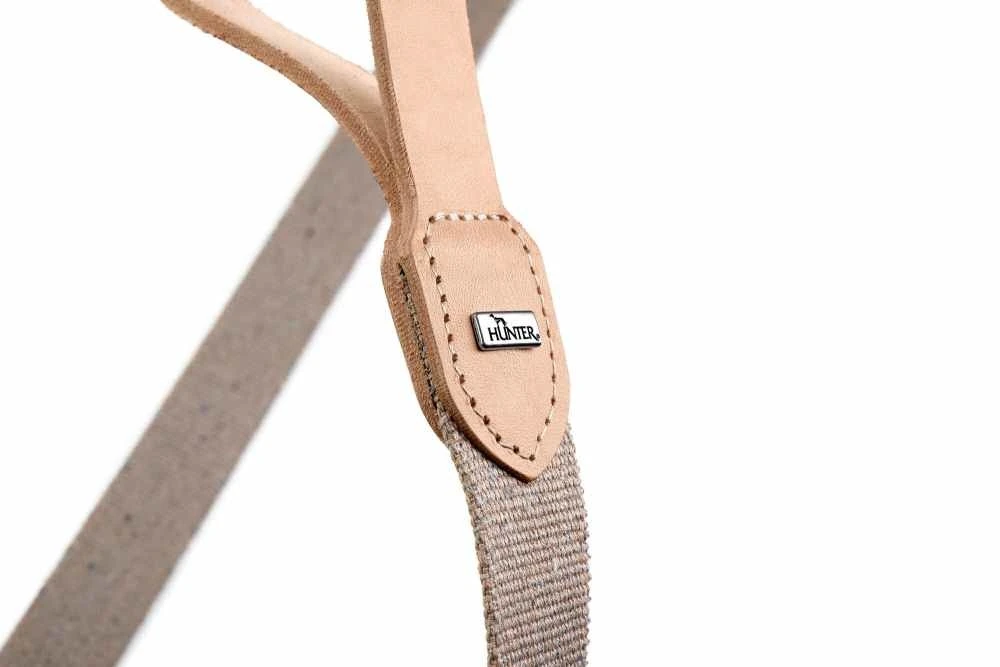 Deze riem is gemaakt van een bijzondere mix van materialen. Het ontwerp is in een minimalistische Scandi-Boho stijl. De liefhebbers van eenvoudige elegantie zullen de natuurlijke materialen, lichte kleuren en de strakke lijnen zeker kunnen waarderen. De riem is zacht en aangenaam licht. Het natuurlijke leer combineert prachtig met het grijze katoen.