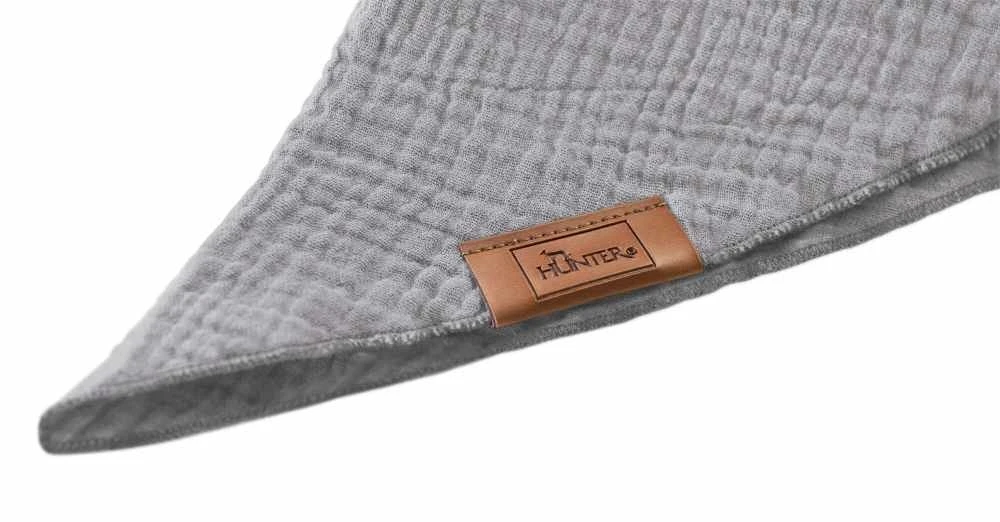 Dit is een fraaie grijs bandana die u enkel of dubbel knoopt om de nek van de hond. De bandana is uitgevoerd in aangenaam zacht en licht katoen. U kunt de driehoekige bandana op 30 graden wassen.