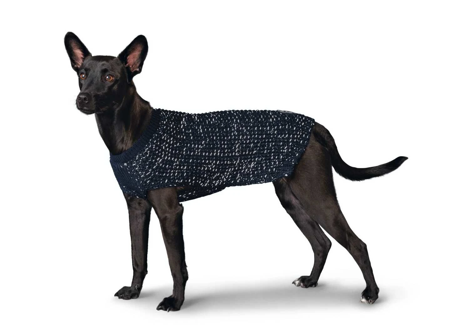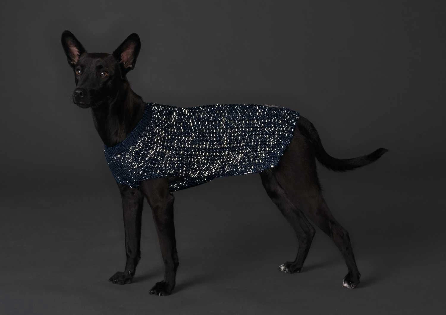 Een warme gebreide trui voor koude dagen. Elke hond zal dankbaar zijn voor deze warme en knuffelige hondentrui. Dankzij het reflecterende garen is de trui ook nog eens extra goed zichtbaar. De hondentrui is gebreid van dik garen en belemmert de hond niet bij bewegingen. Overigens: bij een plotselinge regen- of sneeuwbui kan er gewoon een honden (regen) jas over de trui worden getrokken om de viervoeter te beschermen tegen onaangename nattigheid. Als de hondenpullover vuil is, kan deze gewoon op 30 ° C worden gewassen.