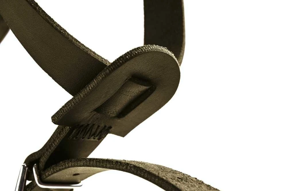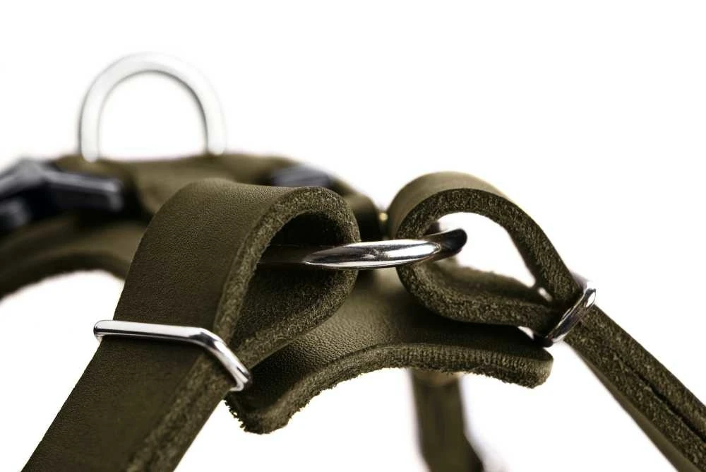 Dit is een comfortabel en functioneel groen hondentuig dat is gemaakt van zacht koeienleer. Het Y tuig heeft een geweldige pasvorm, Het hondentuig biedt uw hond veel vrijheid in de oksels door de verlengde borstriem. U kunt het tuig op vijf plaatsen verstellen.
