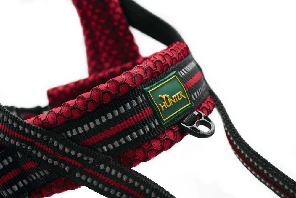 Een degelijk en comfortabel hondentuig dat is gemaakt van dat is gemaakt van zacht en ademend 3D mesh materiaal. Het tuig heeft een stevige kliksluiting aan de zijkant en een traploos verstelbare buikriem.