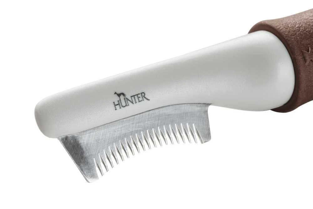 Zelfs moeilijk bereikbare plaatsen zijn gemakkelijk te bereiken met dit gebogen trimmes. Het is daardoor mogelijk om moeiteloos losse bovenvacht te verwijderen, vooral rond de buik en rug. Het hoogwaardige roestvrijstalen mes zorgt keer op keer voor ideale resultaten voor honden met zowel kort, halflang als lang haar. Perfecte verzorgingspraktijken met een stevige grip: de ergonomisch gevormde greep in een hoogwaardige lederlook garandeert dat het mes antislip en gemakkelijk te gebruiken is.