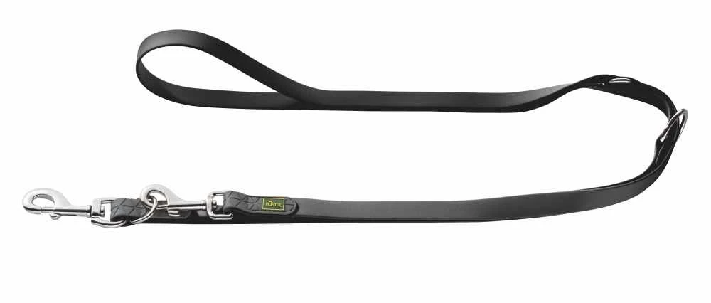 Verstelbare riemen kunnen verschillende andere hondenriemen van verschillende lengtes vervangen, wat ze zo praktisch maakt. Dankzij de drie verstelmogelijkheden past deze riem zich moeiteloos aan elke situatie aan: een lange riem om te wandelen, een korte riem om te trainen of een wandeling door de binnenstad. De lijn is in een mum van tijd correct ingesteld. Het innovatieve kunststof materiaal is duurzaam, scheurvast en waterdicht en daardoor bijzonder onderhoudsvriendelijk. Vuil kan gemakkelijk worden afgewassen, nattigheid kan worden afgedept. De karabijnhaken en ringen zorgen voor bevestiging aan de halsband of het tuigje.