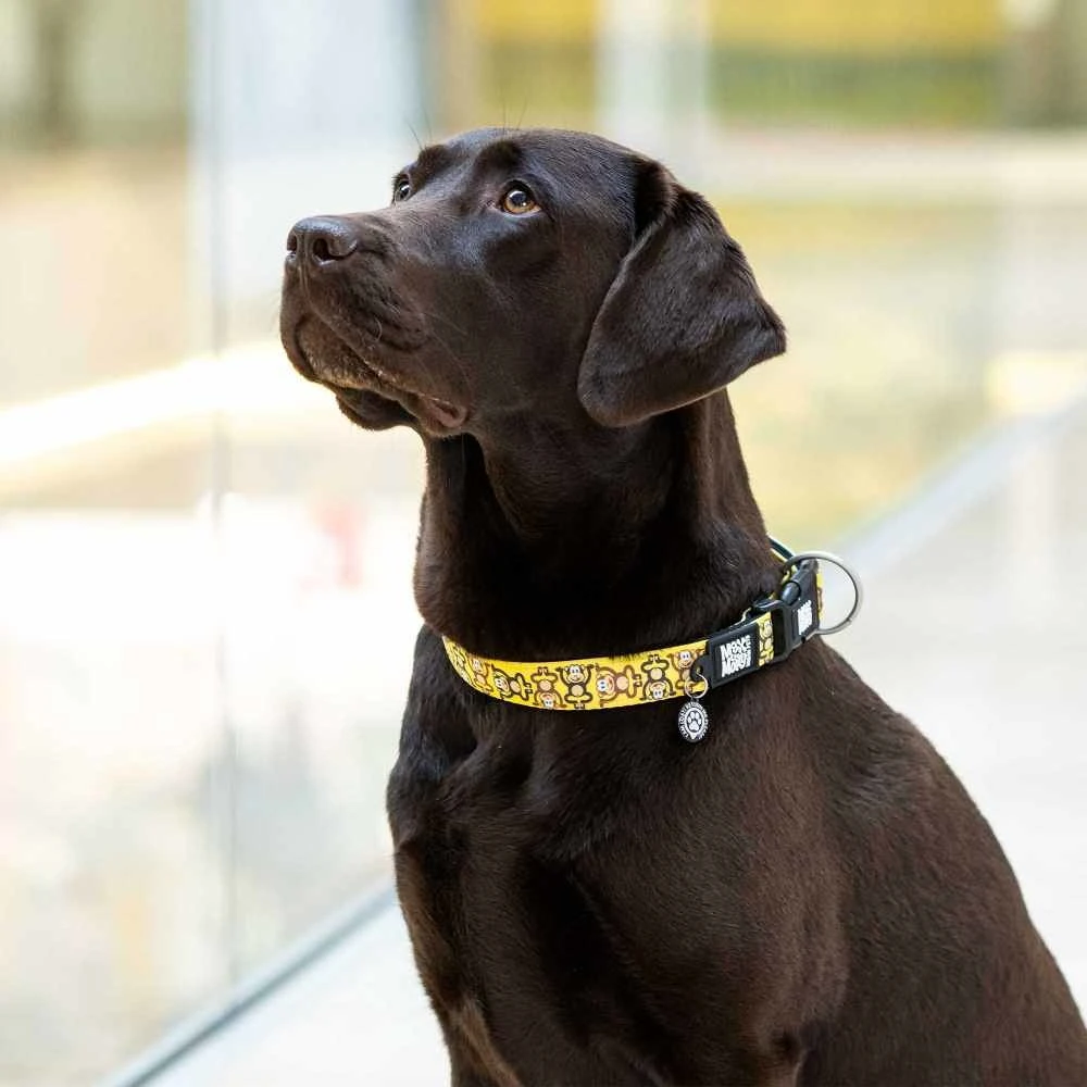 Dit is een hippe en opvallende gele hondenhalsband met een print met aapjes. Maak een echte eye catcher van uw hond ! De halsband heeft een gratis Smart ID waarmee u de hond op de handige app Gotcha! kunt registreren. Dit is heel handig om de hond terug te vinden mocht deze verdwalen. De app is gratis te gebruiken voor alle Max & Molly producten. Meer informatie op de website http://www.gotchapet.com/.