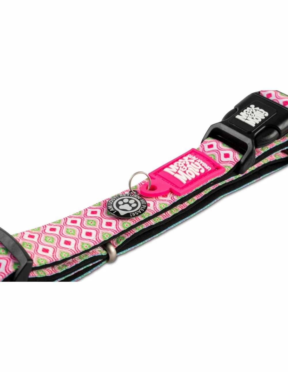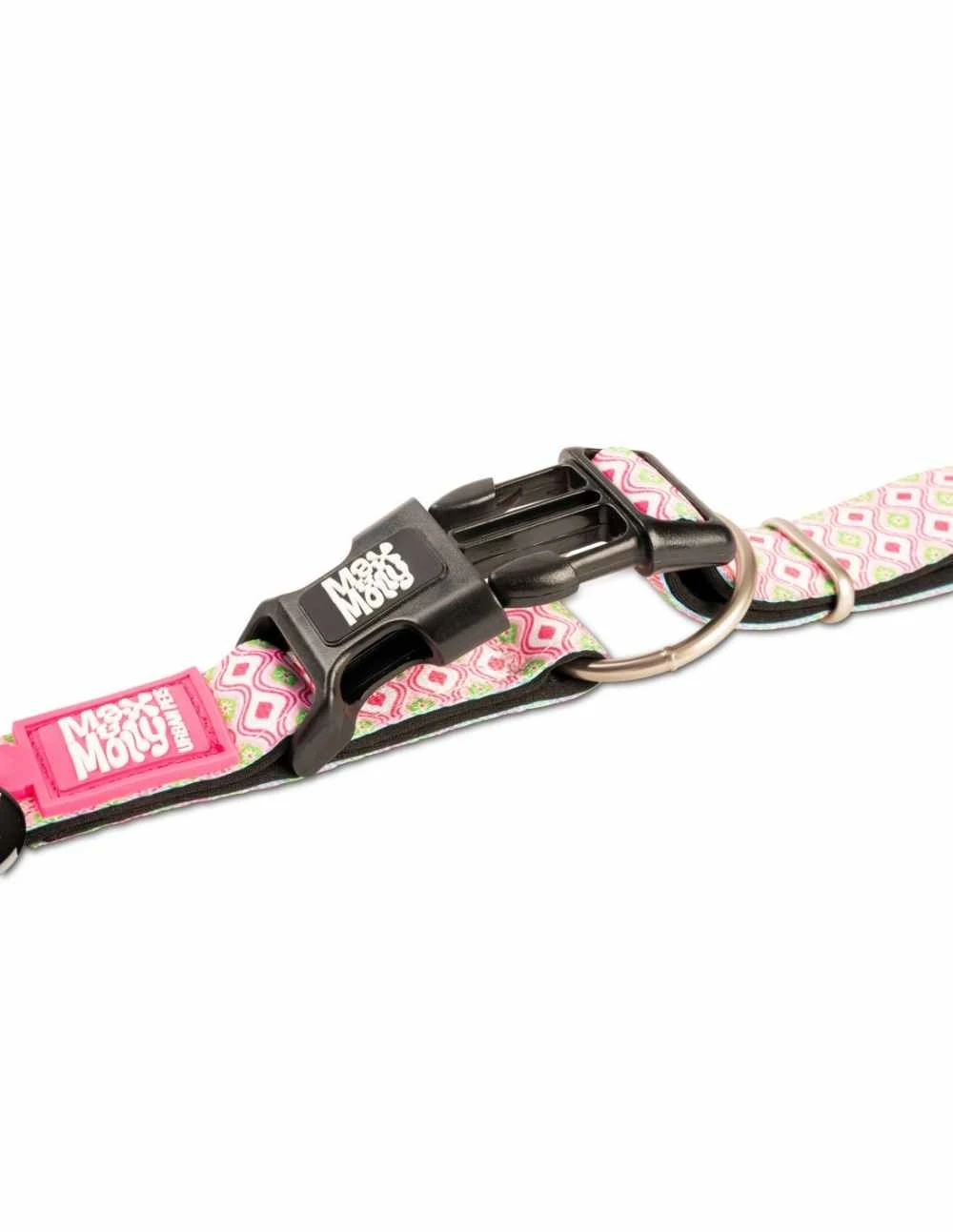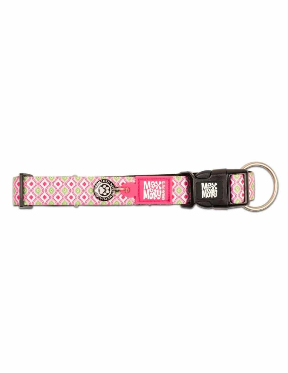 Dit is een hippe en opvallende hondenhalsband met een roze retro print. Maak een echte eye catcher van uw hond ! De halsband heeft een gratis Smart ID waarmee u de hond op de handige app Gotcha! kunt registreren. Dit is heel handig om de hond terug te vinden mocht deze verdwalen. De app is gratis te gebruiken voor alle Max & Molly producten. Meer informatie op de website http://www.gotchapet.com/.