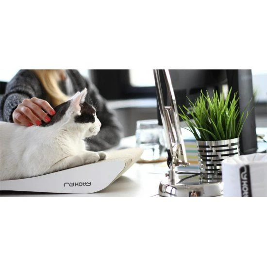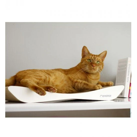 Een modern en fraai design wit krabmeubel, dat volledig met de hand wordt gemaakt. Het is gemaakt van golfkarton, waar katten helemaal dol op zijn. Het prachtige design maakt het meubel tot een heuse blikvanger in elk interieur.