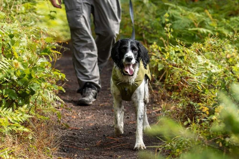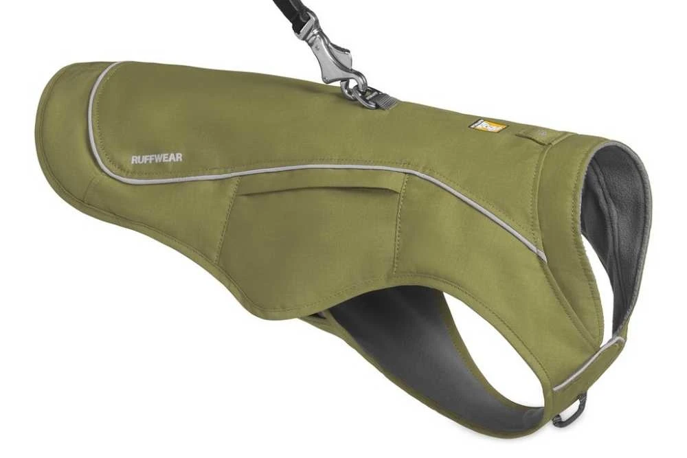 Deze modieuze groene hondenjas is goed geschikt voor regenachtige en koele dagen. De polyester hondenjas is waterafstotend en heeft een geïntegreerd tuig. Het jasje is gevoerd met zacht fleece dat de hond aangenaam warm houdt.