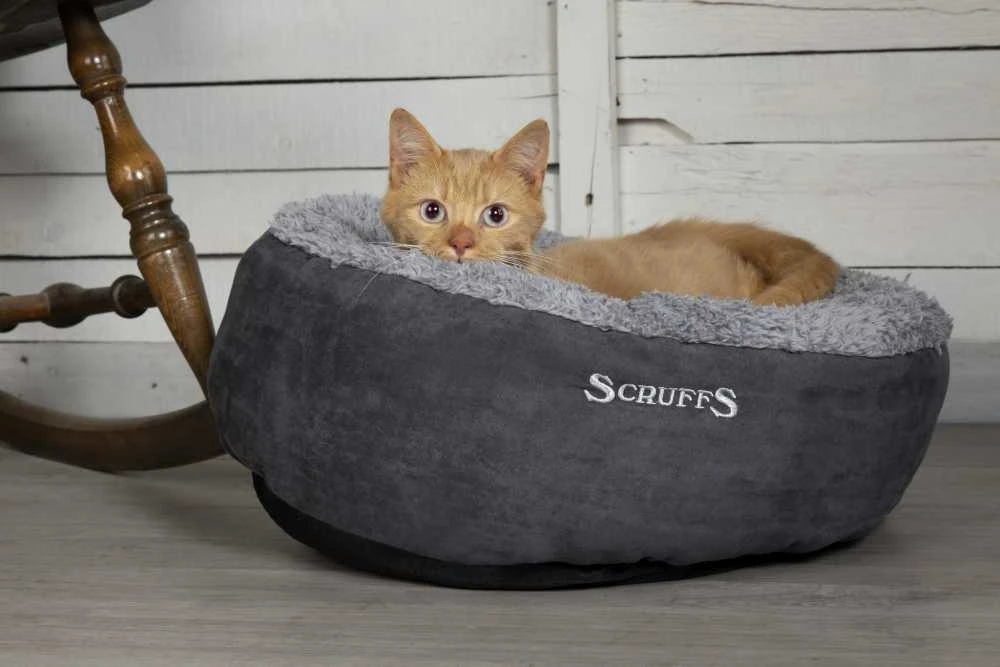 Door de buitenzijde van imitatie suède heeft deze kattenmand een luxe uitstraling. Het liggedeelte van de mand is bijzonder comfortabel voor uw kat door het zeer zachte pluche materiaal. Aan de voorzijde van de kattenmand vindt u het geborduurde Scruffs logo. De vulling bestaat uit gerecyclede groene PET vezels die uw kat voldoende ondersteuning geven. De mand kan compleet in de machine gewassen worden op max. 30 graden.