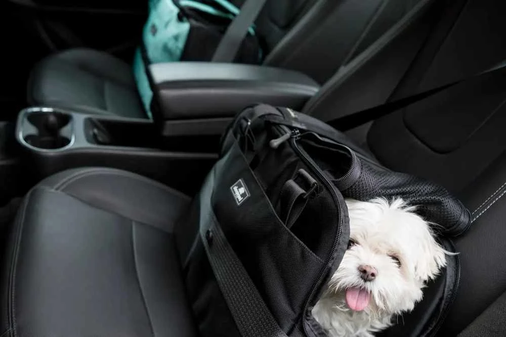 U kunt de tas ook vastzetten in de auto met de autogordel.