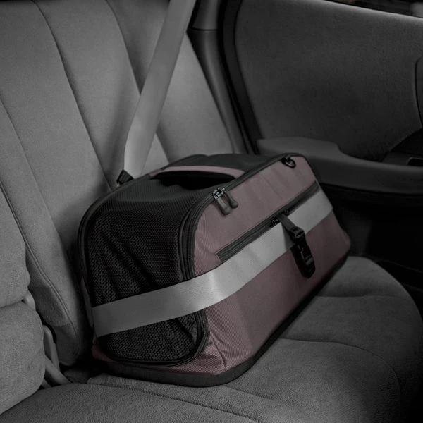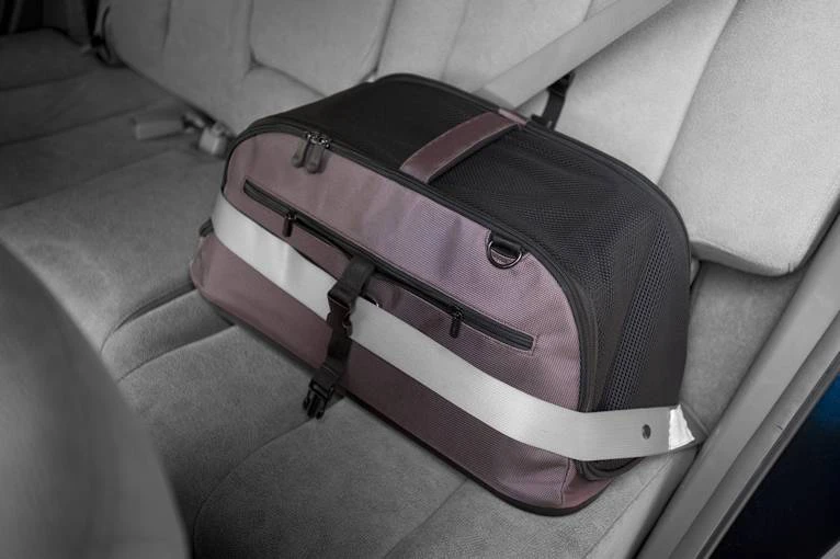 Voor gebruik in de auto, is de hondentas voorzien van banden aan beide zijden waarmee u de tas veilig kunt vastmaken aan de autogordel.