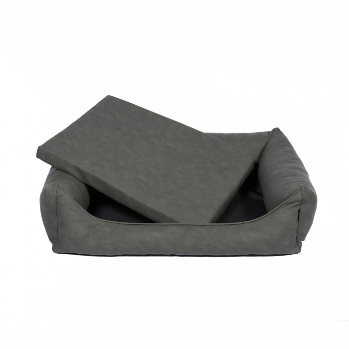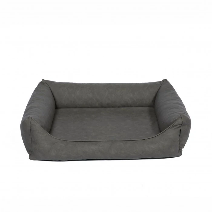 Dit is een moderne en trendy hondenmand die fraai is uitgevoerd met een uitneembaar los kussen. Het geheel is uitgevoerd in een hoge kwaliteit kunstleer. De randen zijn stevig gevuld en deze zijn zeer comfortabel voor de hond. Zij geven de juiste ondersteuning aan uw hond voor de rug en de kop. De hoes is wel afritsbaar, maar niet wasbaar.